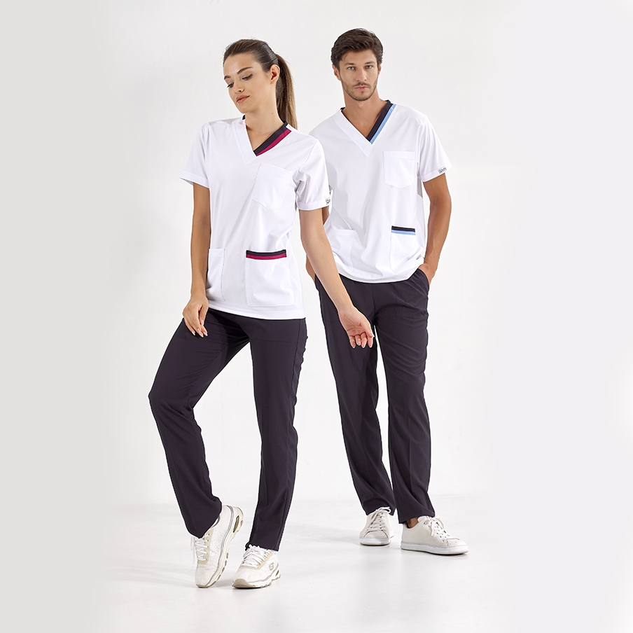 Çift Yakalı Scrubs Takım, Çizgi Üniforma'nın tüm sağlık çalışanlarının yanı sıra sağlık okulları için de tasarladığı özel modellerden biridir. Yakalarındaki renk uyumuyla klasikleşmiş forma anlayışının dışında modern ve farklı bir duruş oluşturmaktadır.
