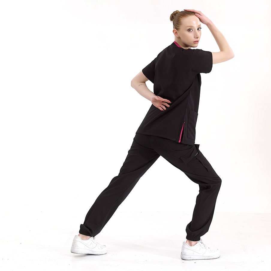 Black Jogger Doctor Nurse Medical Scrubs Set Luxury Lycra Fabric General Features