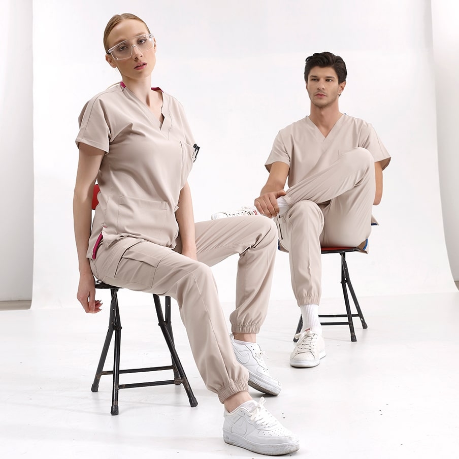 Cream Jogger Doctor Nurse Medical Scrubs Set Luxury Lycra Fabric General Features