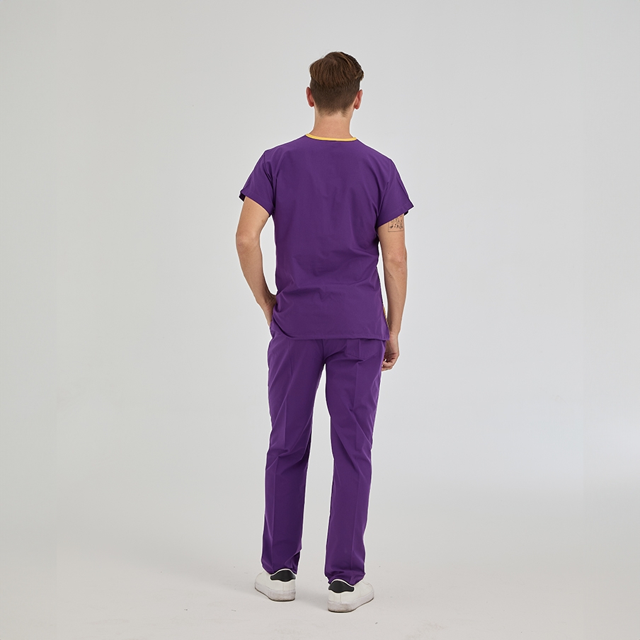Özel Mor Dr. Greys Doktor Hemşire Medikal Scrubs Takım Terikoton Kumaş, sağlık profesyonellerinin konforu için özel olarak tasarlanmış cerrahi nöbet takımıdır. V yaka, yarasa kol üst ve lastikli bel pantolondan oluşur. Terletmeyen kumaş yapısı ve fonksiyonel cepleri ile yoğun çalışma temposuna uygundur.