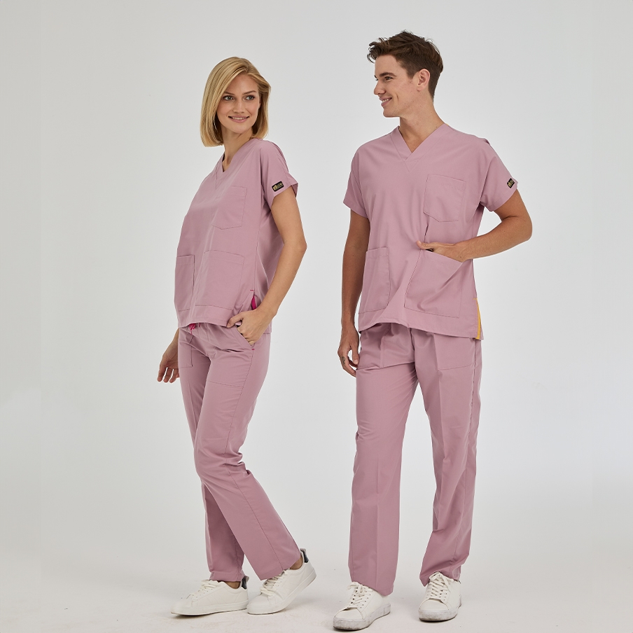 Gül Kurusu Dr. Greys Doktor Hemşire Medikal Scrubs Takım Terikoton Kumaş, sağlık profesyonellerinin konforu için özel olarak tasarlanmış cerrahi nöbet takımıdır. V yaka, yarasa kol üst ve lastikli bel pantolondan oluşur. Terletmeyen kumaş yapısı ve fonksiyonel cepleri ile yoğun çalışma temposuna uygundur.