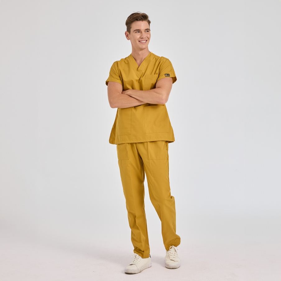 Hardal Dr. Greys Doktor Hemşire Medikal Scrubs Takım Terikoton Kumaş, sağlık profesyonellerinin konforu için özel olarak tasarlanmış cerrahi nöbet takımıdır. V yaka, yarasa kol üst ve lastikli bel pantolondan oluşur. Terletmeyen kumaş yapısı ve fonksiyonel cepleri ile yoğun çalışma temposuna uygundur.