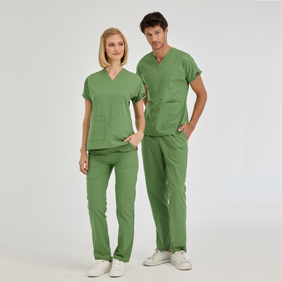 Fıstık Yeşili Dr. Greys Doktor Hemşire Medikal Scrubs Takım Terikoton Kumaş Genel Özellikleri