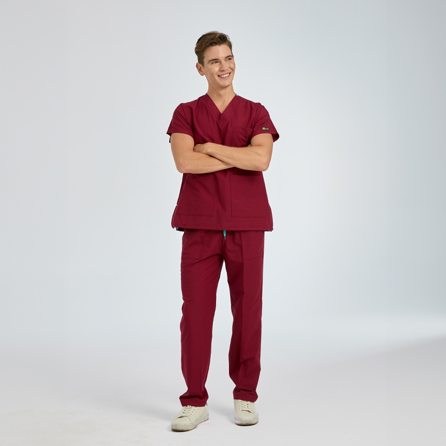 Bordo Dr. Greys Doktor Hemşire Medikal Scrubs Takım Terikoton Kumaş, sağlık profesyonellerinin konforu için özel olarak tasarlanmış cerrahi nöbet takımıdır. V yaka, yarasa kol üst ve lastikli bel pantolondan oluşur. Terletmeyen kumaş yapısı ve fonksiyonel cepleri ile yoğun çalışma temposuna uygundur.