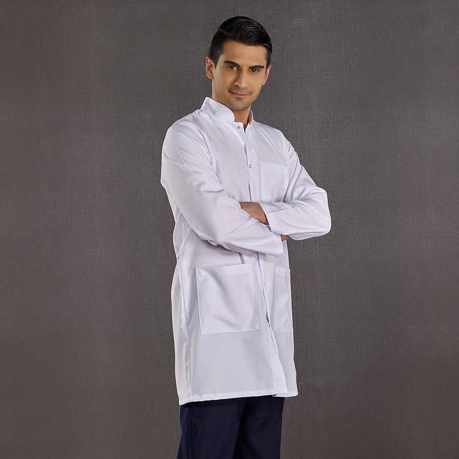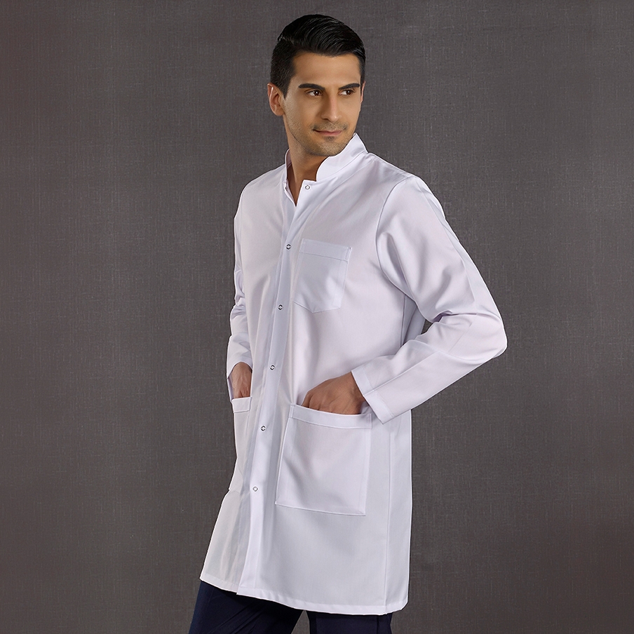 Erkek Hakim Yaka Doktor Vizit Önlüğü, yakasız yaka olarak da bilinen hakim yaka tasarımıyla modern ve şık bir duruş sergiler. Dik duran yakası katlanmaz ve karizmatik bir görünüm sağlar. Doktorlar, diş hekimleri, veterinerler ve diğer sağlık personelleri tarafından dört mevsim güvenle kullanılabilir.