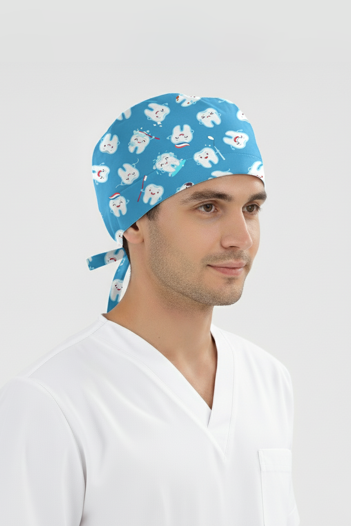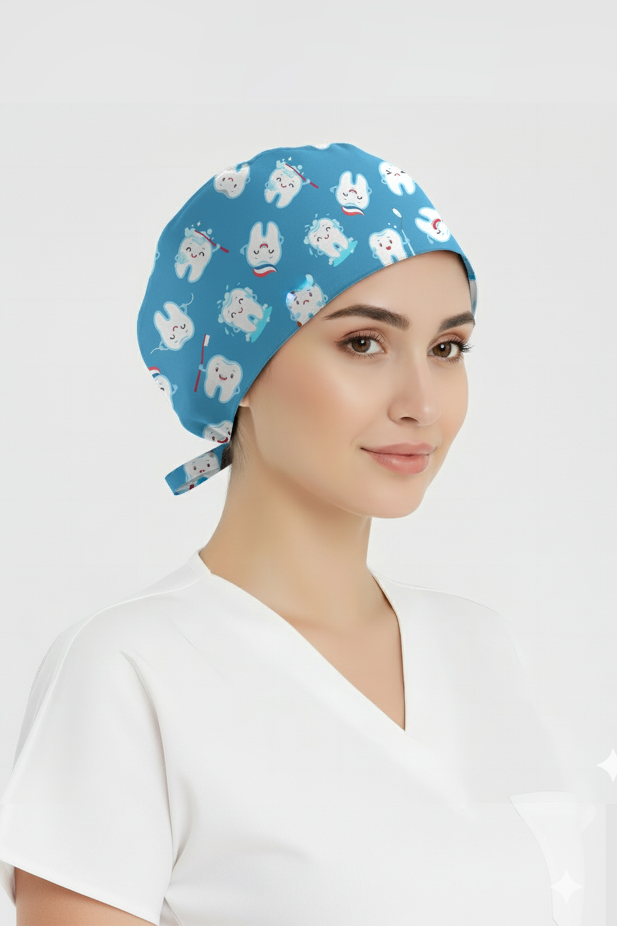 Fırçalı Dişler Desenli Bone (Cotton Likra Kumaş)
