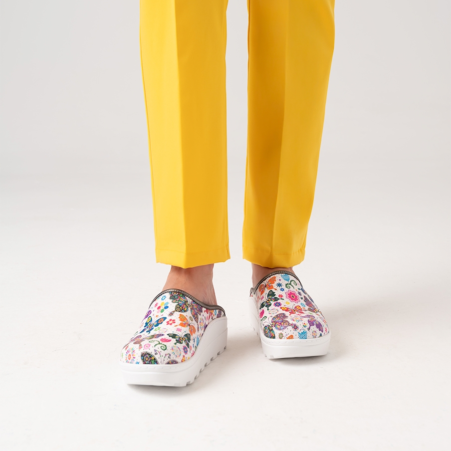 Women's Fit Vivacolor Medical Clogs are produced by Cizgi Medikal and are a frequently preferred product by women. Our Fit Vivacolor products are specially printed by us and the patterns are designed by us. Fit Vivacolor Clogs are mostly used by healthcare professionals, healthcare interns and hospital workers. The product, which is a Cizgi Medikal design, is available in different color options. The product is designed to suit women's foot anatomy and is manufactured in sizes 36, 37, 38, 39, 40.