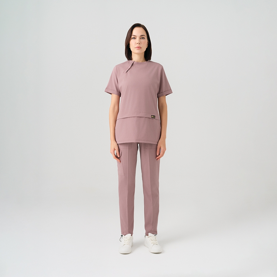 Gül Kurusu Zero Doktor Hemşire Medikal Scrubs Takım Best Likralı Kumaş, sağlık çalışanlarının rahatlığı ve şıklığı için tasarlanmış yan çıtçıtlı bisiklet yaka cerrahi takımdır. Stoperli paça yapısı ve fonksiyonel cepleri ile gün boyu konfor sağlar.