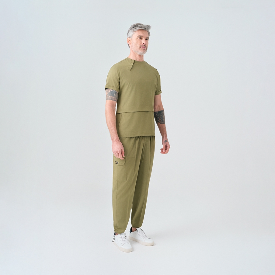 Haki Zero Doktor Hemşire Medikal Scrubs Takım Best Likralı Kumaş, sağlık çalışanlarının rahatlığı ve şıklığı için tasarlanmış yan çıtçıtlı bisiklet yaka cerrahi takımdır. Stoperli paça yapısı ve fonksiyonel cepleri ile gün boyu konfor sağlar.