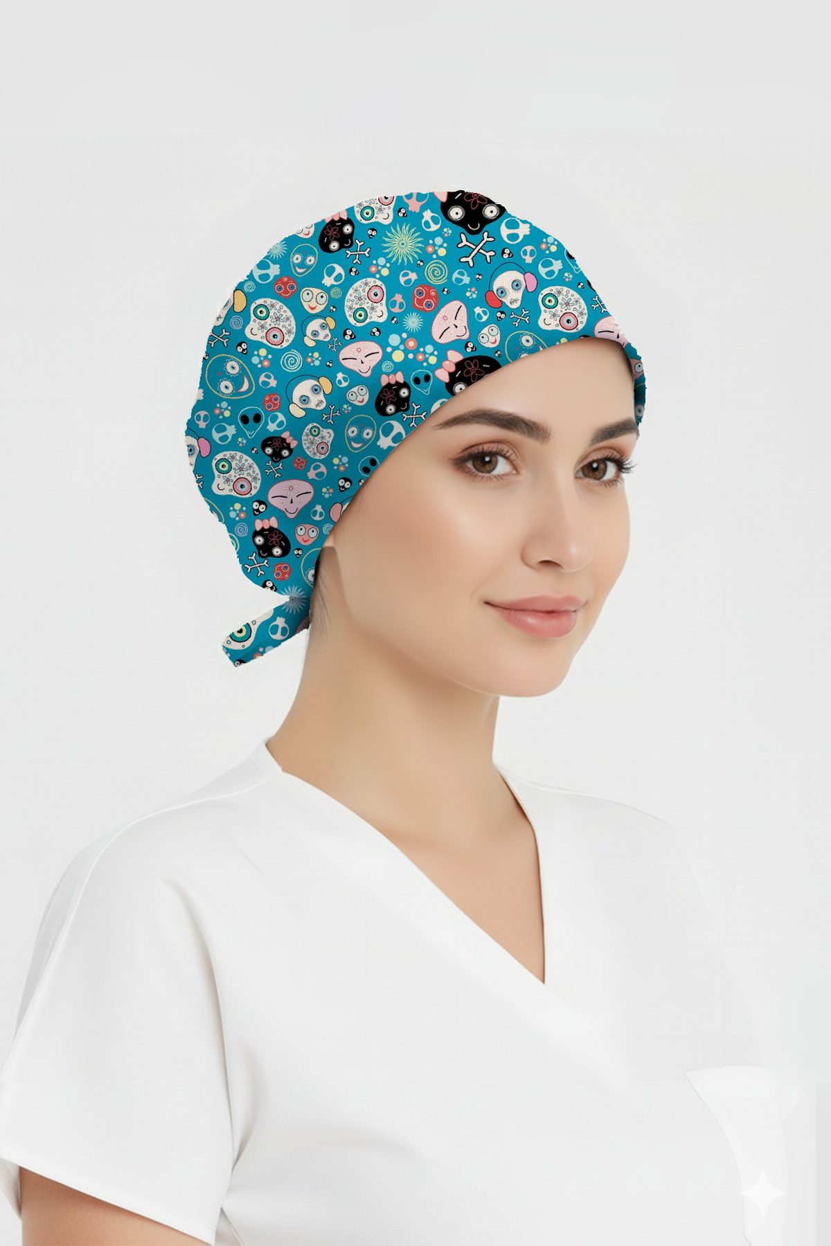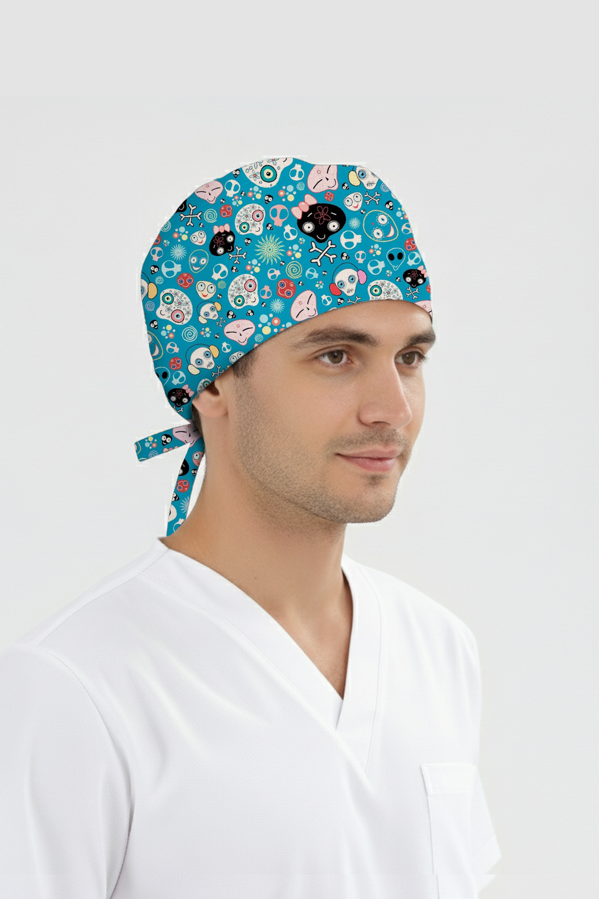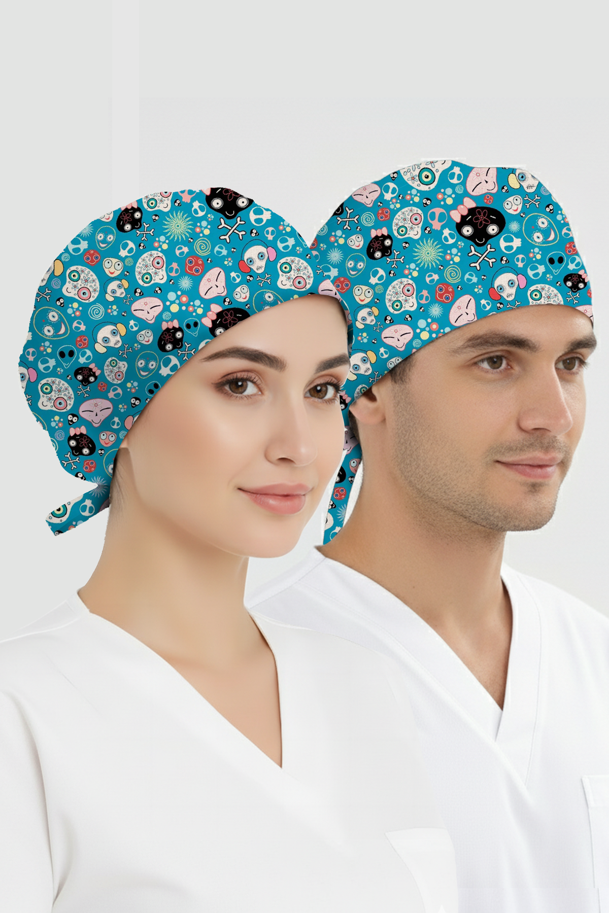 Surgical scrub caps are accessories worn on the head by doctors, nurses, and other healthcare professionals to maintain hygiene. Çizgi Medikal Uniforma's in-house produced surgical caps offer a wide variety of colors and patterns.
