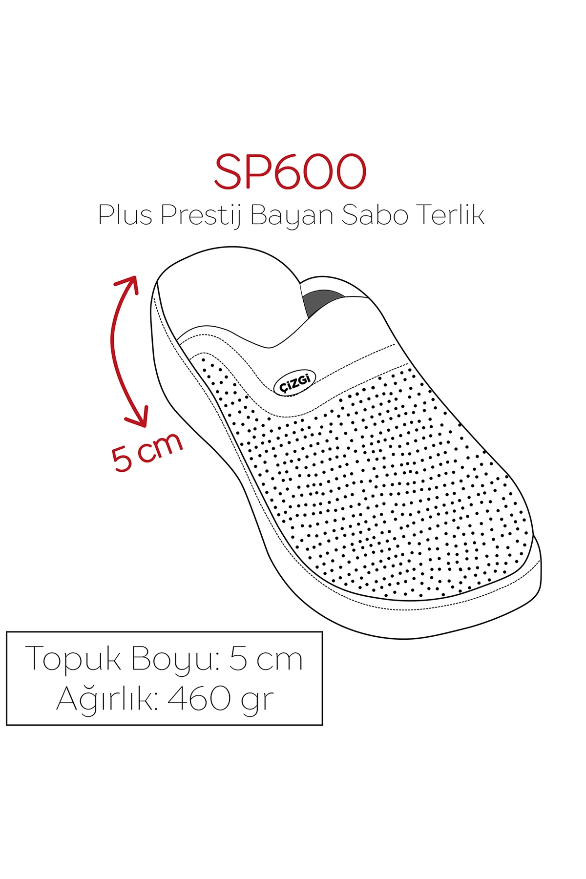 Kadın Plus Prestij Sabo Terlik, Çizgi Medikal üretimi olup hastane çalışanları ve diğer iş sektöründeki kadınların sıklıkla tercih ettiği bir üründür. Plus Prestij Sabo Terlik daha çok sağlık çalışanları, sağlık stajyerleri ve hastane çalışanları kullanmaktadır. Plus Prestij Sabo Terlikler ayak tabanındaki ortopedik 5 nokta düşünülerek üretildiği için ayak konforu sağlamaktadır. Bu sayede sabo terlik kullanıcıları daha az yorulmaktadır. Kadın ayak anatomisi yapısına uygun tasarlanmış ürünün 35, 36, 37, 38, 39, 40 numaraları imal edilmektedir.