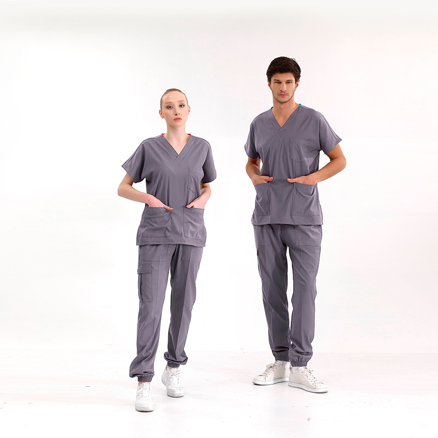 Kurşuni Gri Jogger Doktor Hemşire Medikal Scrubs Takım Lüks Likralı Kumaş Genel Özellikleri