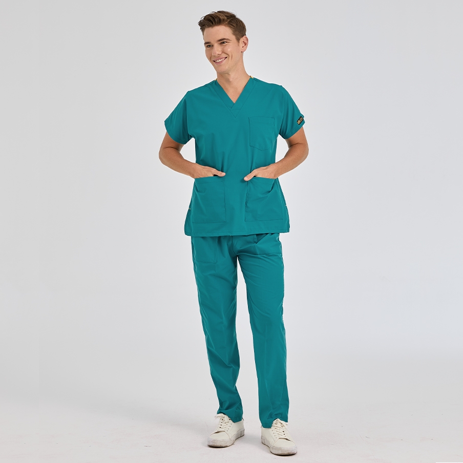 Light Petrol Green Dr. Greys Doctor Nurse Medical Scrubs Set Poly‑cotton blend fabric is a surgical scrub set specially designed for the comfort of healthcare professionals. It consists of a V-neck, batwing sleeve top and elastic waist pants. It is suitable for intense work tempos with its non-sweating fabric structure and functional pockets.
