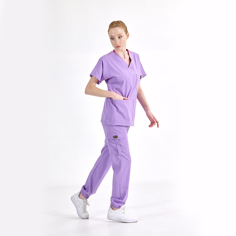 Общие характеристики Лиловый Медицинский Костюм Jogger для Врачей и Медсестер Ткань Люкс Лайкра