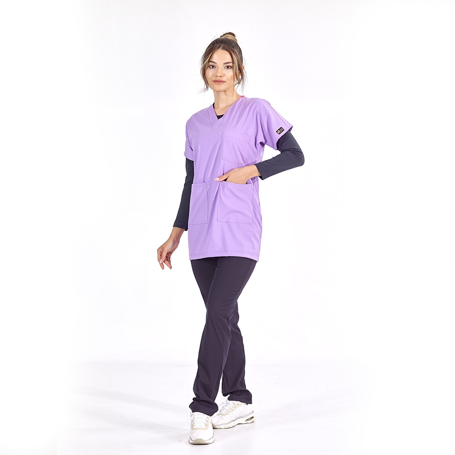Lila Greys Tunik Boy Tesettür Doktor Hemşire Medikal Forma Tek Üst Lüks Likralı Kumaş