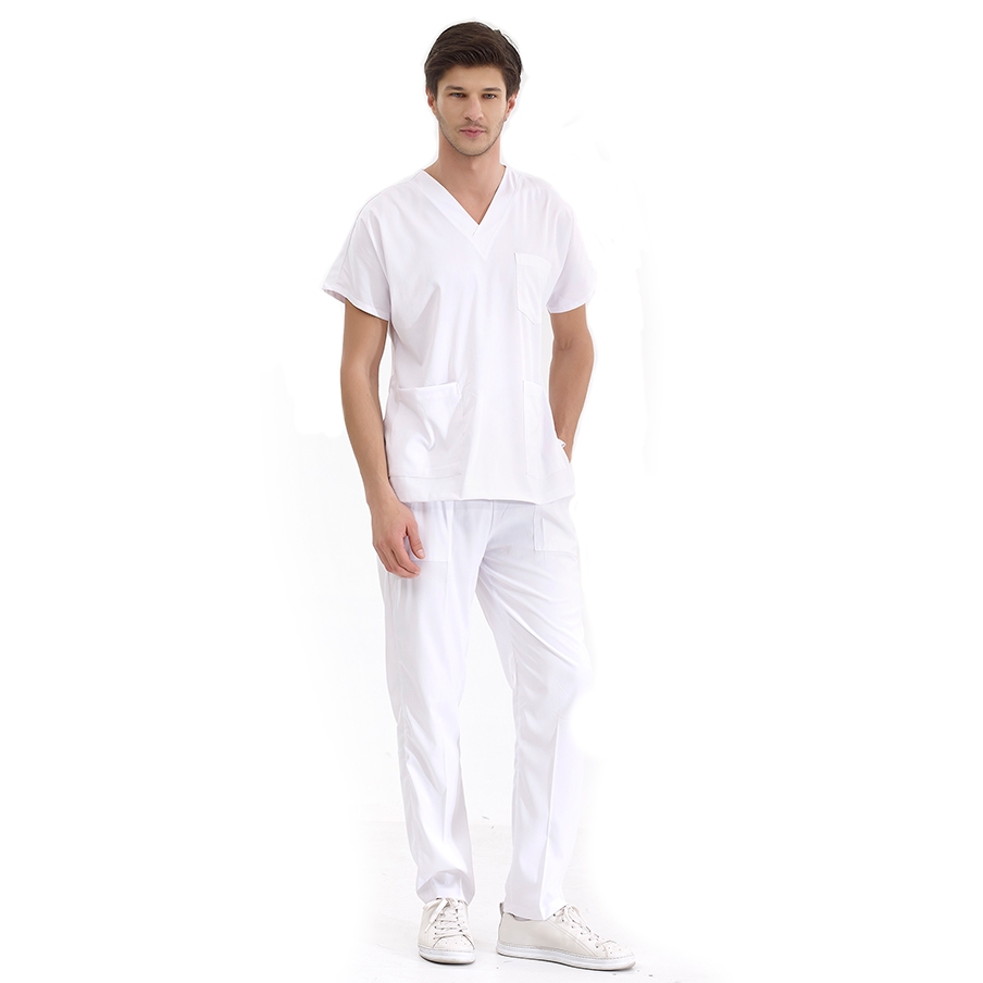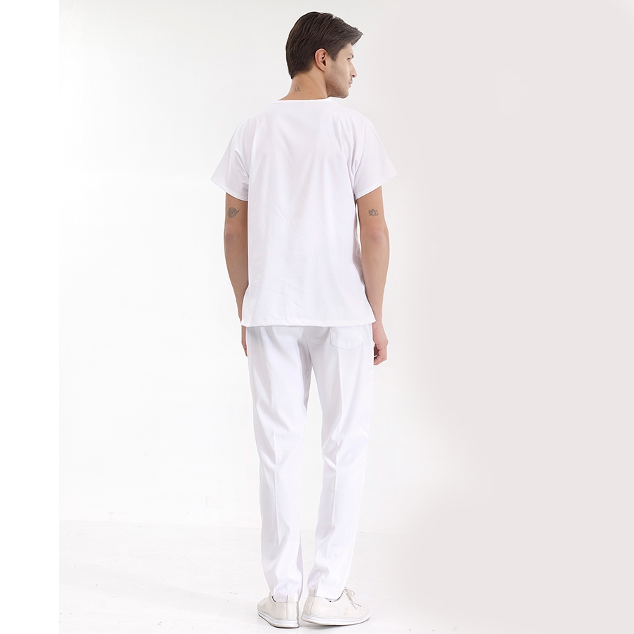 Beyaz Dr. Greys Doktor Hemşire Medikal Scrubs Takım Lüks Likralı Kumaş, sağlık profesyonellerinin konforu için özel olarak tasarlanmış cerrahi nöbet takımıdır. V yaka, yarasa kol üst ve lastikli bel pantolondan oluşur. Terletmeyen kumaş yapısı ve fonksiyonel cepleri ile yoğun çalışma temposuna uygundur.