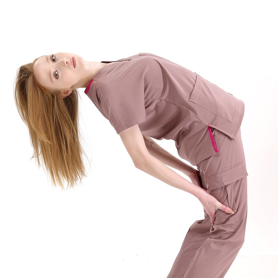 Общие характеристики Пыльная роза Медицинский Костюм Jogger для Врачей и Медсестер Ткань Люкс Лайкра