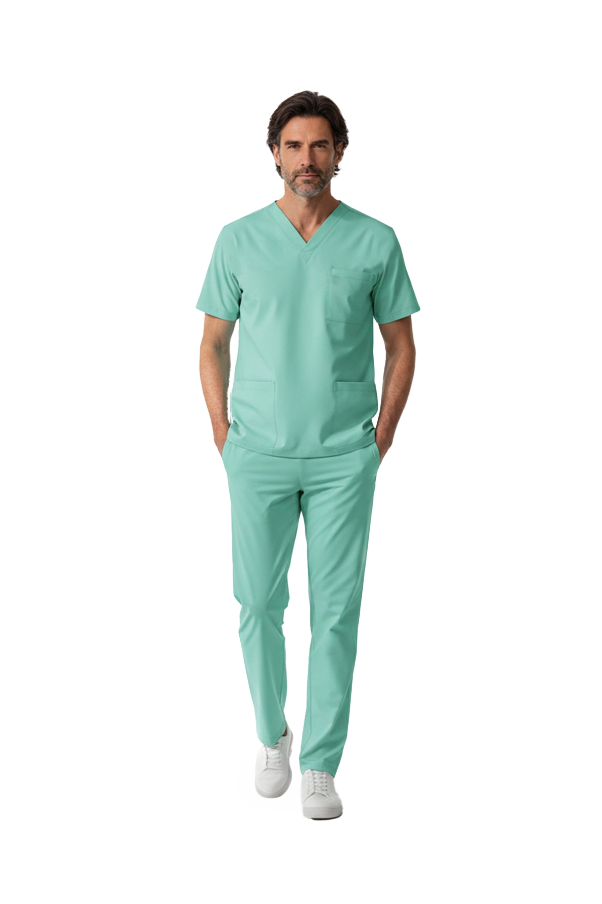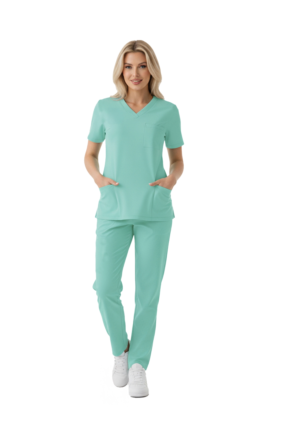 Медицинский костюм Bermuda Dr. Greys из люксовой стрейч-ткани создан для комфорта медицинских работников. Комплект включает верх с V-образным вырезом и рукавами «летучая мышь» и брюки с эластичным поясом. Дышащая ткань и функциональные карманы подходят для интенсивной работы.
