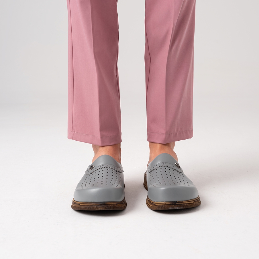 Gray Men's Doctor Nurse Medical Gold Fit Genuine Leather Clogs are specially designed 100% genuine leather medical clogs for male healthcare professionals. They offer both comfort and aesthetics with a specially designed sole and gold pattern embossing.