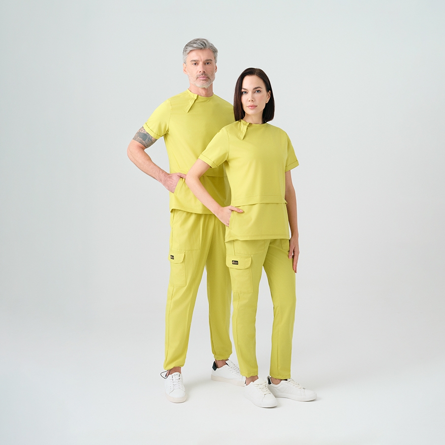 Neon Yeşil Zero Doktor Hemşire Medikal Scrubs Takım Best Likralı Kumaş, sağlık çalışanlarının rahatlığı ve şıklığı için tasarlanmış yan çıtçıtlı bisiklet yaka cerrahi takımdır. Stoperli paça yapısı ve fonksiyonel cepleri ile gün boyu konfor sağlar.