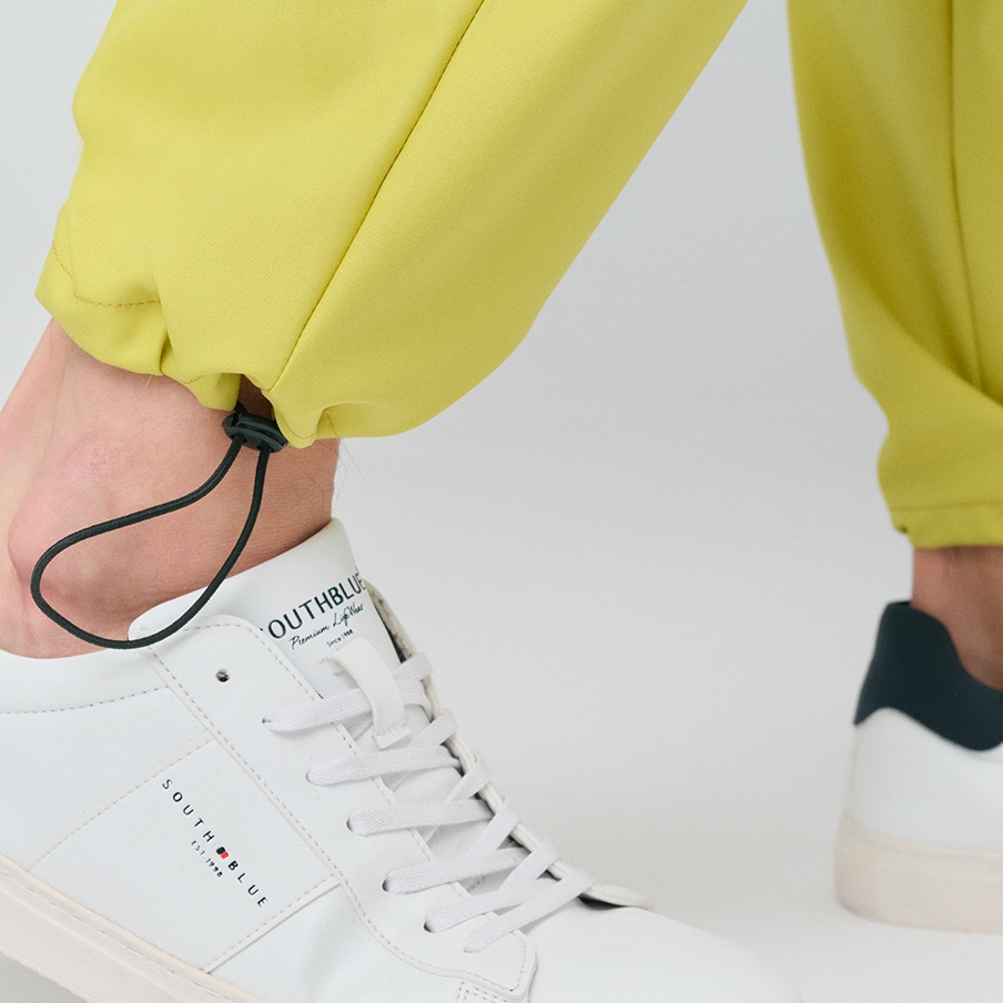 • An den Beinabschlüssen ist ein Gummiband angebracht, das mit einem Stopper verstellbar ist.