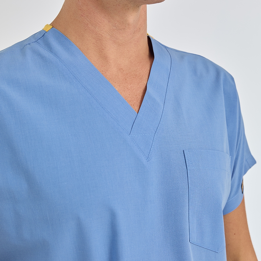 Parliament Blue Dr. Greys Doctor Nurse Medical Scrubs Set Poly‑cotton blend fabric is a surgical scrub set specially designed for the comfort of healthcare professionals. It consists of a V-neck, batwing sleeve top and elastic waist pants. It is suitable for intense work tempos with its non-sweating fabric structure and functional pockets.