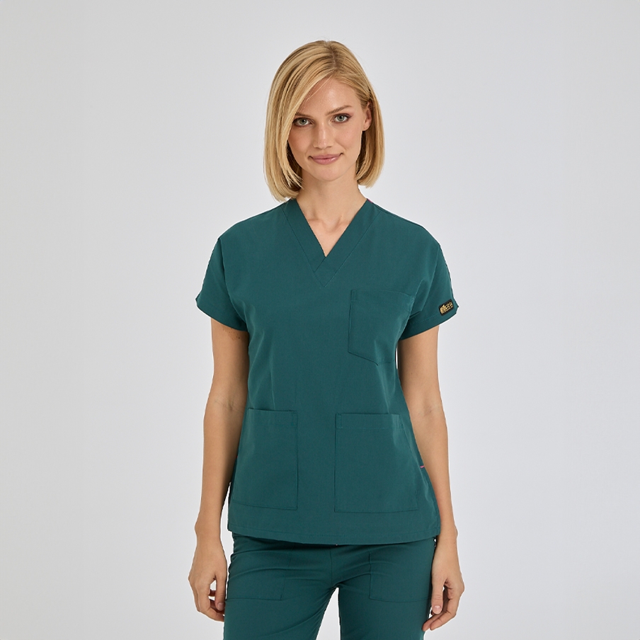 Petrol Green Dr. Greys Doctor Nurse Medical Scrubs Set Poly‑cotton blend fabric is a surgical scrub set specially designed for the comfort of healthcare professionals. It consists of a V-neck, batwing sleeve top and elastic waist pants. It is suitable for intense work tempos with its non-sweating fabric structure and functional pockets.