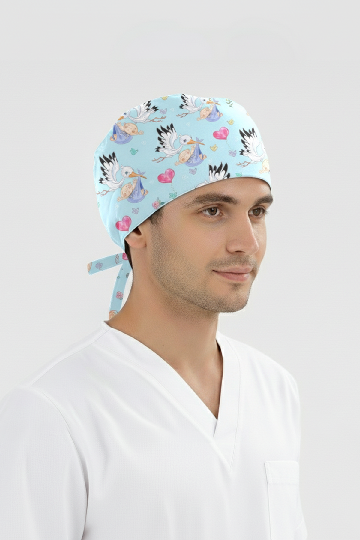 Postacı Leylek Desenli Bone (Cotton Likra Kumaş)