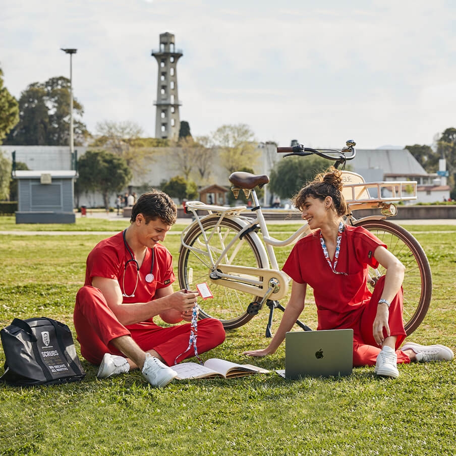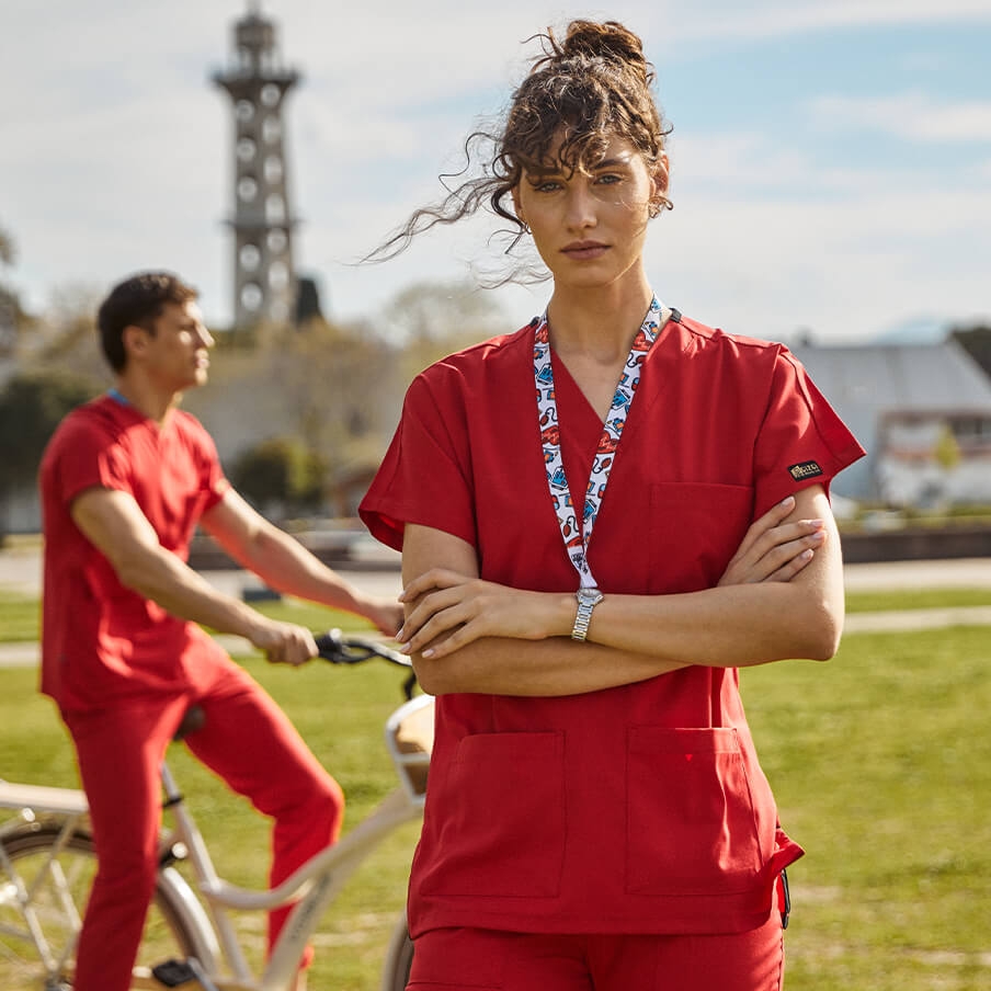 Red Dr. Greys Doctor Nurse Medical Scrubs Set Luxury Lycra Fabric General Features