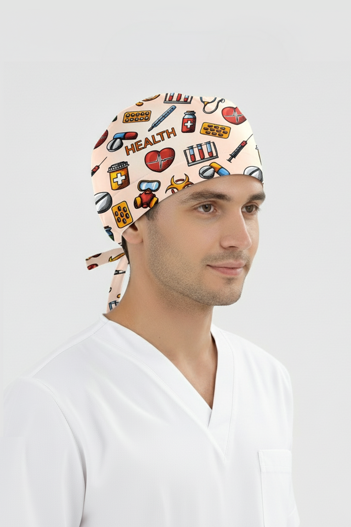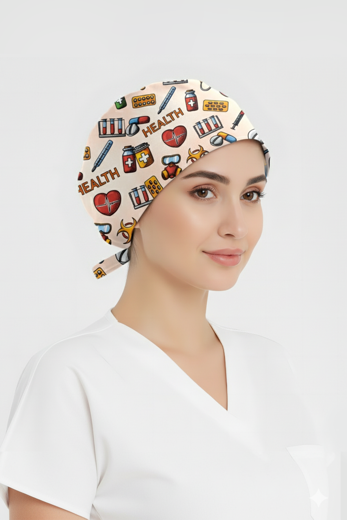 Sağlık Kutusu Desenli Bone (Cotton Likra Kumaş)