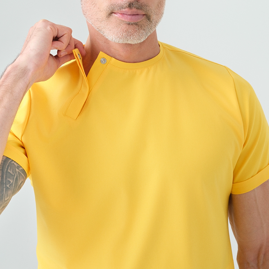 Sarı Zero Doktor Hemşire Medikal Scrubs Takım Best Likralı Kumaş, sağlık çalışanlarının rahatlığı ve şıklığı için tasarlanmış yan çıtçıtlı bisiklet yaka cerrahi takımdır. Stoperli paça yapısı ve fonksiyonel cepleri ile gün boyu konfor sağlar.