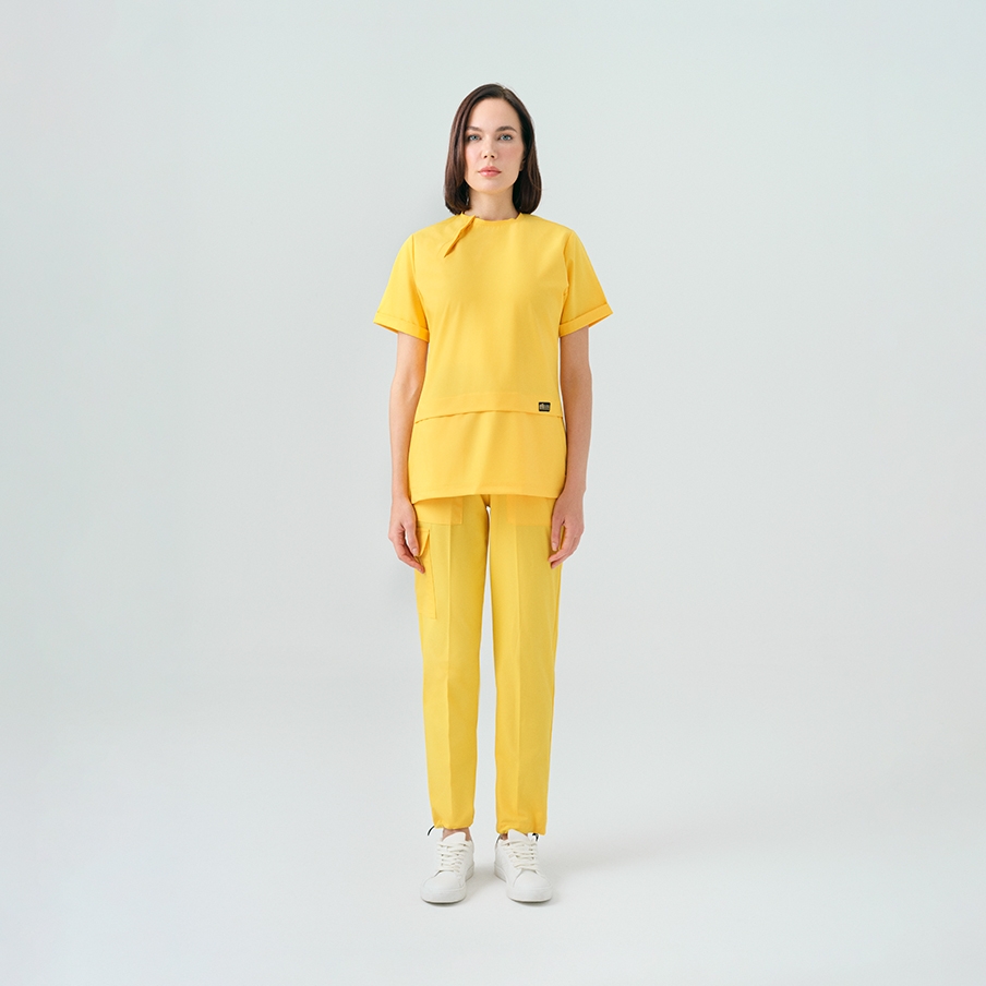 Sarı Zero Doktor Hemşire Medikal Scrubs Takım Best Likralı Kumaş