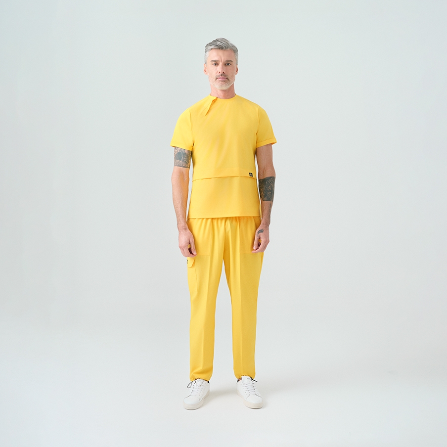 Sarı Zero Doktor Hemşire Medikal Scrubs Takım Best Likralı Kumaş, sağlık çalışanlarının rahatlığı ve şıklığı için tasarlanmış yan çıtçıtlı bisiklet yaka cerrahi takımdır. Stoperli paça yapısı ve fonksiyonel cepleri ile gün boyu konfor sağlar.