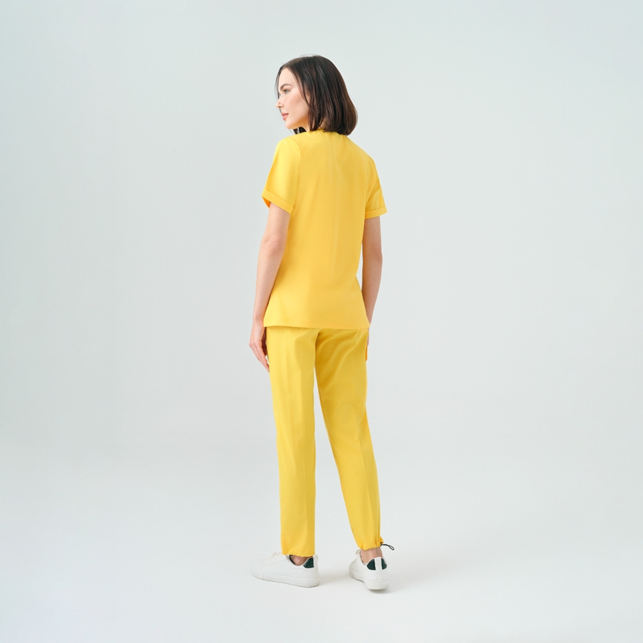 Sarı Zero Doktor Hemşire Medikal Scrubs Takım Best Likralı Kumaş