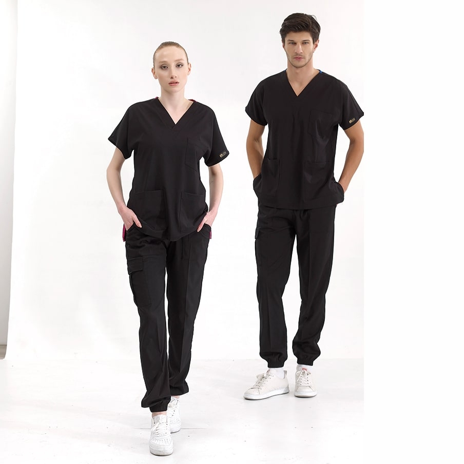 Allgemeine Merkmale des Schwarz Jogger Medizinischer Scrubs Set für Ärzte und Pflege Luxus Lycra-Stoff