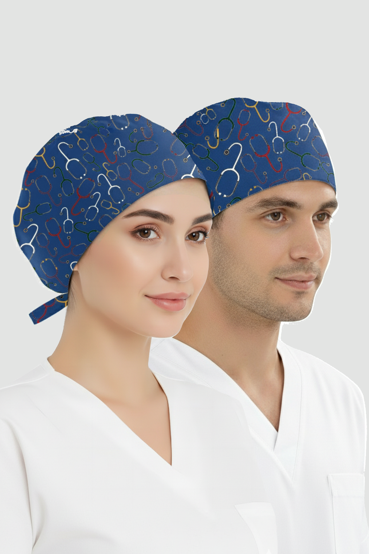 Surgical scrub caps are accessories worn on the head by doctors, nurses, and other healthcare professionals to maintain hygiene. Çizgi Medikal Uniforma's in-house produced surgical caps offer a wide variety of colors and patterns.