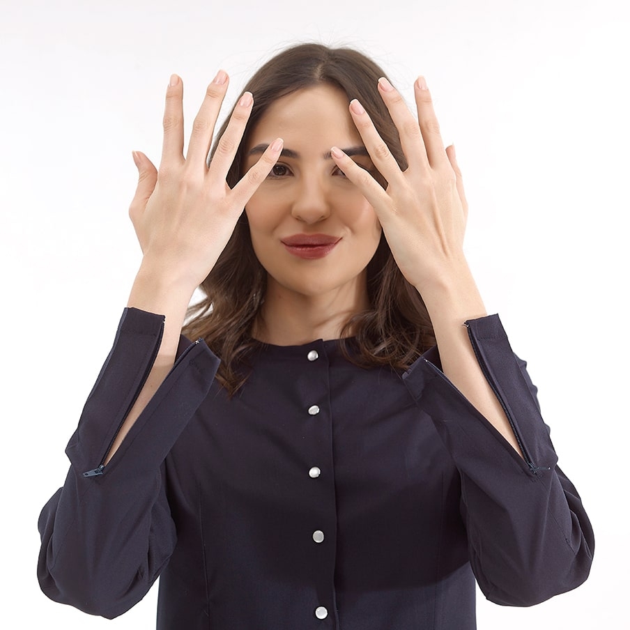 • Поскольку дизайн предназначен для сотрудников, носящих закрытую одежду, он имеет длинные рукава, а части воротника закрыты.