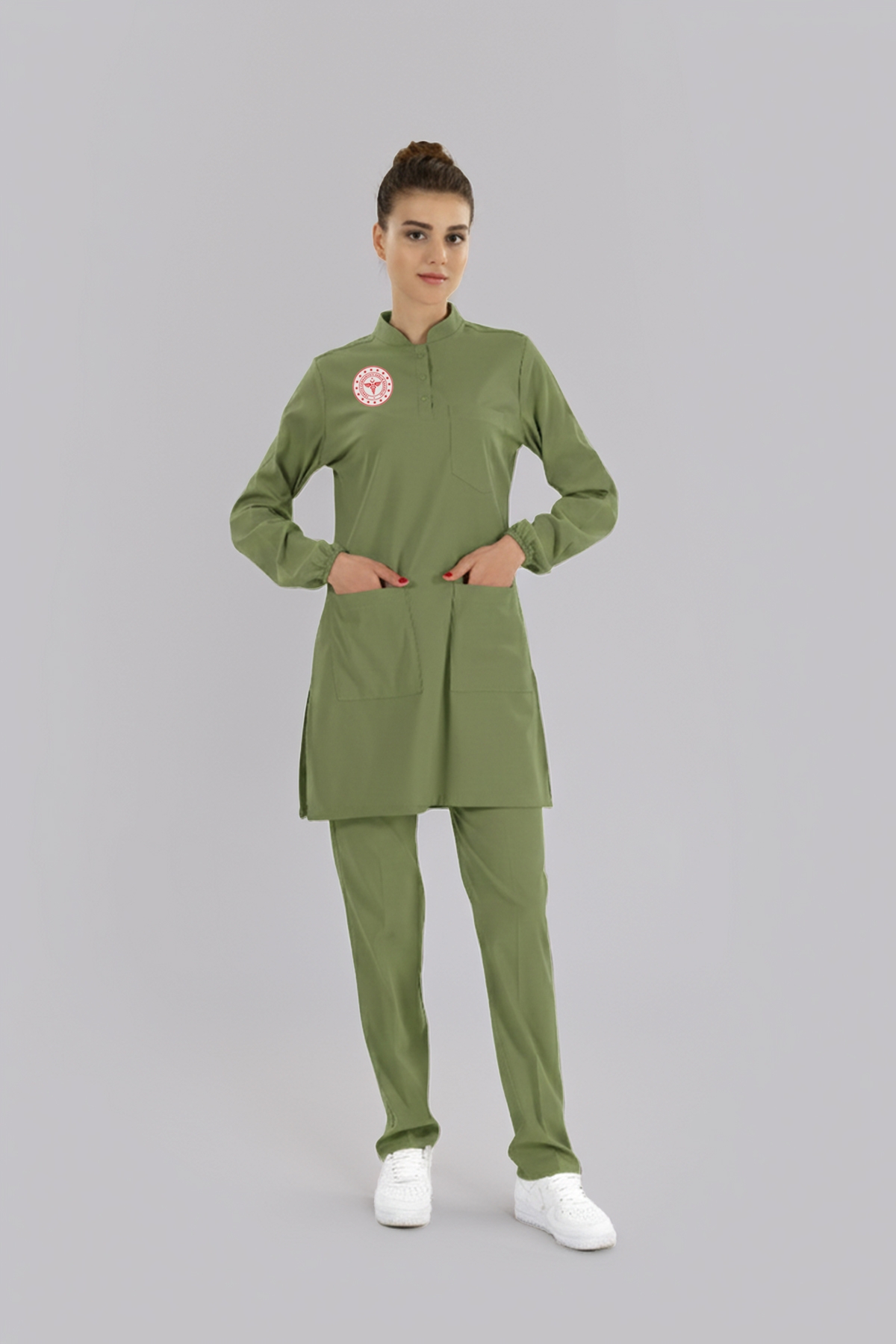 Tesettür Eczacı Forması Scrubs Likralı Takım Sağlık Bakanlığı Uyumlu-Grasshopper