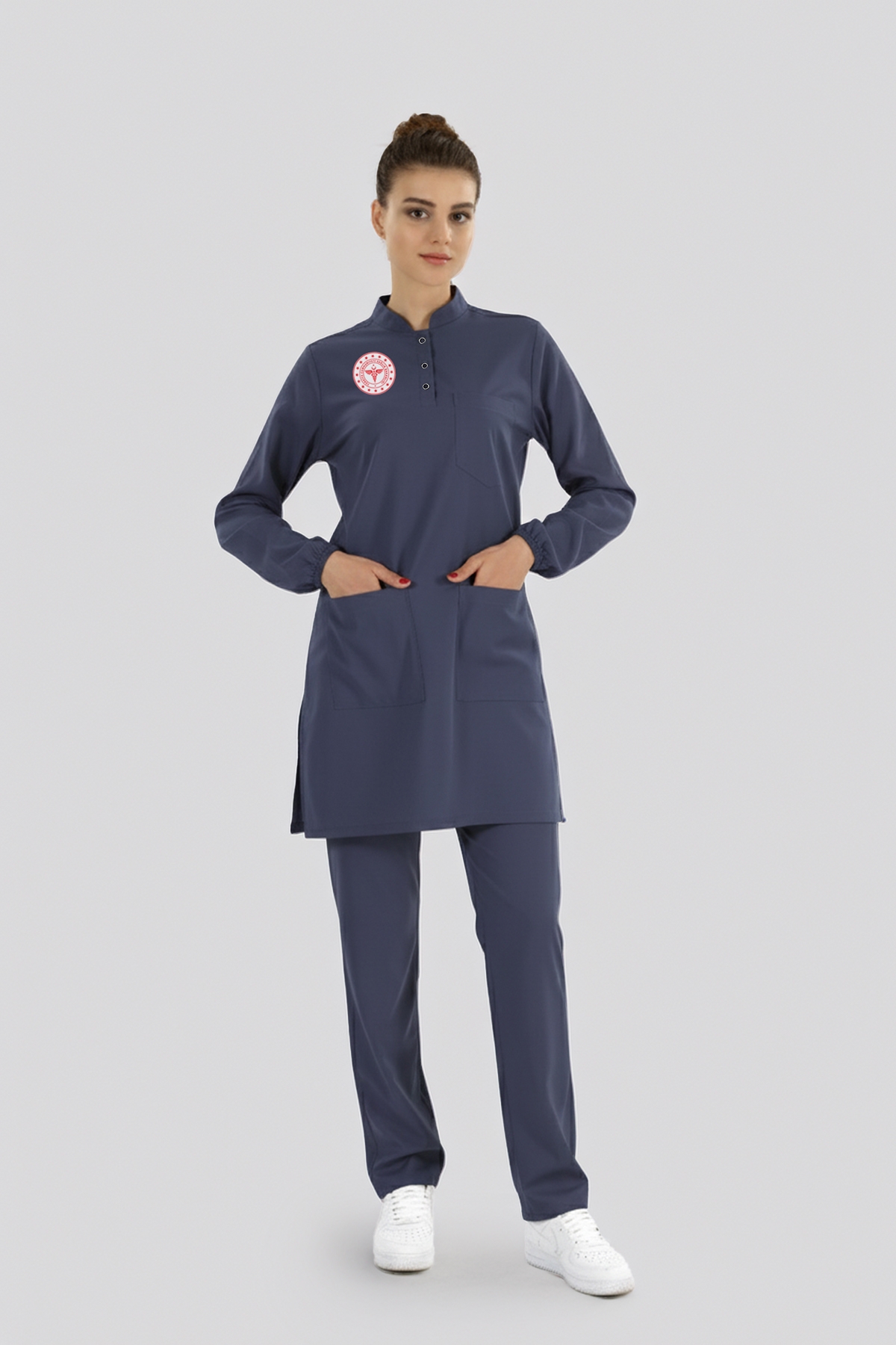 Patriot Blue Tesettür Hemşire Forması Scrubs Likralı Takım Sağlık Bakanlığı Uyumlu, tesettürlü sağlık personelleri için özel olarak tasarlanmıştır. Uzun kollu yapısı ve normal cerrahi takımlardan 12 cm daha uzun etek boyu ile tesettür giyim standartlarına uygundur.