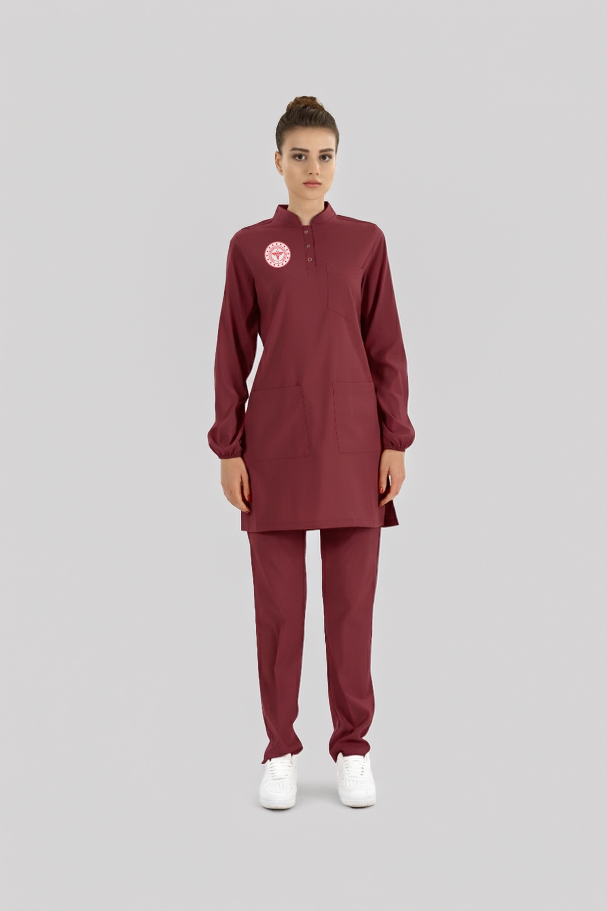Tesettür Lisans-Lisansüstü Sağlık Forması Scrubs Likralı Takım Sağlık Bakanlığı Uyumlu-Biking Red