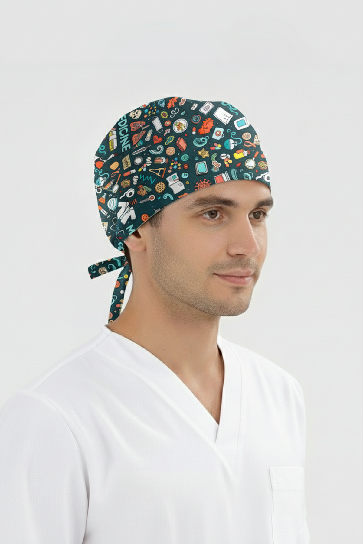 Tıp Dünyası Desenli Bone (Cotton Likra Kumaş)