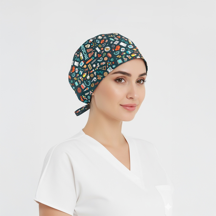 Çizgi Medikal Üniforma’nın kendi üretimi olan Cerrahi boneler onlarca renk ve desen imkanı sunmaktadır.