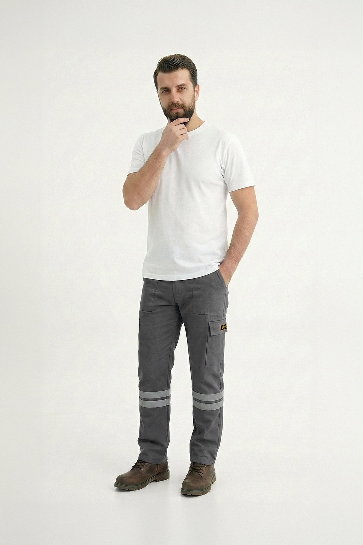 Likralı gabardin kumaştan üretilen 3 cm çift sıra reflektörlü iş pantolonu; esnek, dayanıklı ve yüksek görünürlük sağlayan yapısıyla saha ve endüstriyel kullanım için idealdir.