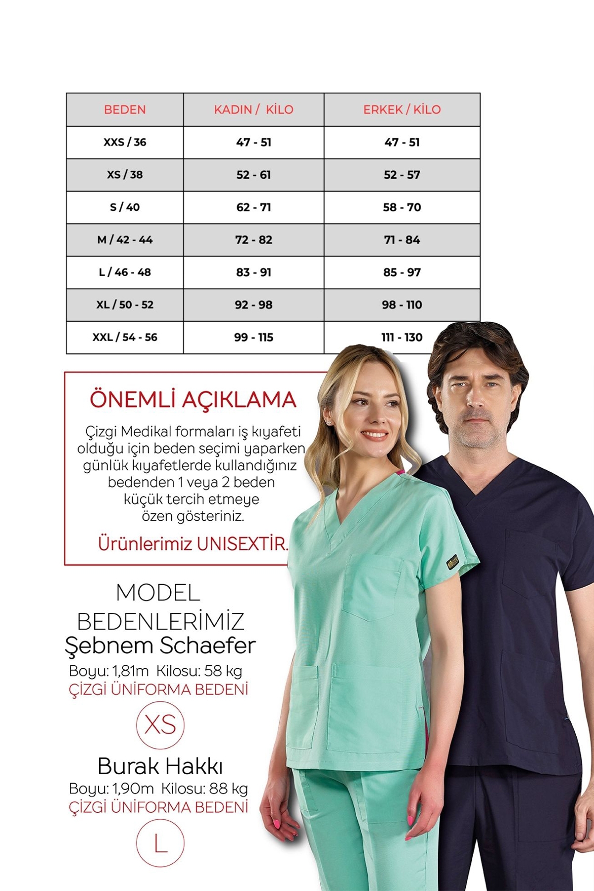 Çizgi Medikal üretimi olan Desenli Cotton Likra Cerrahi tek üstler kadın ve erkekler için üretilmekte olup unisex bir modeldir. Cotton Likra ürünleri daha çok özellikli birimlerde (çocuk poliklinikleri, kardiyoloji servisi, onkoloji servisi, kemoterapi birimleri, acil, ameliyathane çalışanları) sağlık personellerince ve ana okullarındaki öğretmenler tarafından kullanılmaktadır. Ayrıca üstlerin desenli olması özellikli birimlerde moral ve motivasyonun sağlamasında etkili olmaktadır. XXS, XS, S, M, L, XL, XXL   beden seçenekleriyle üretilmektedir.