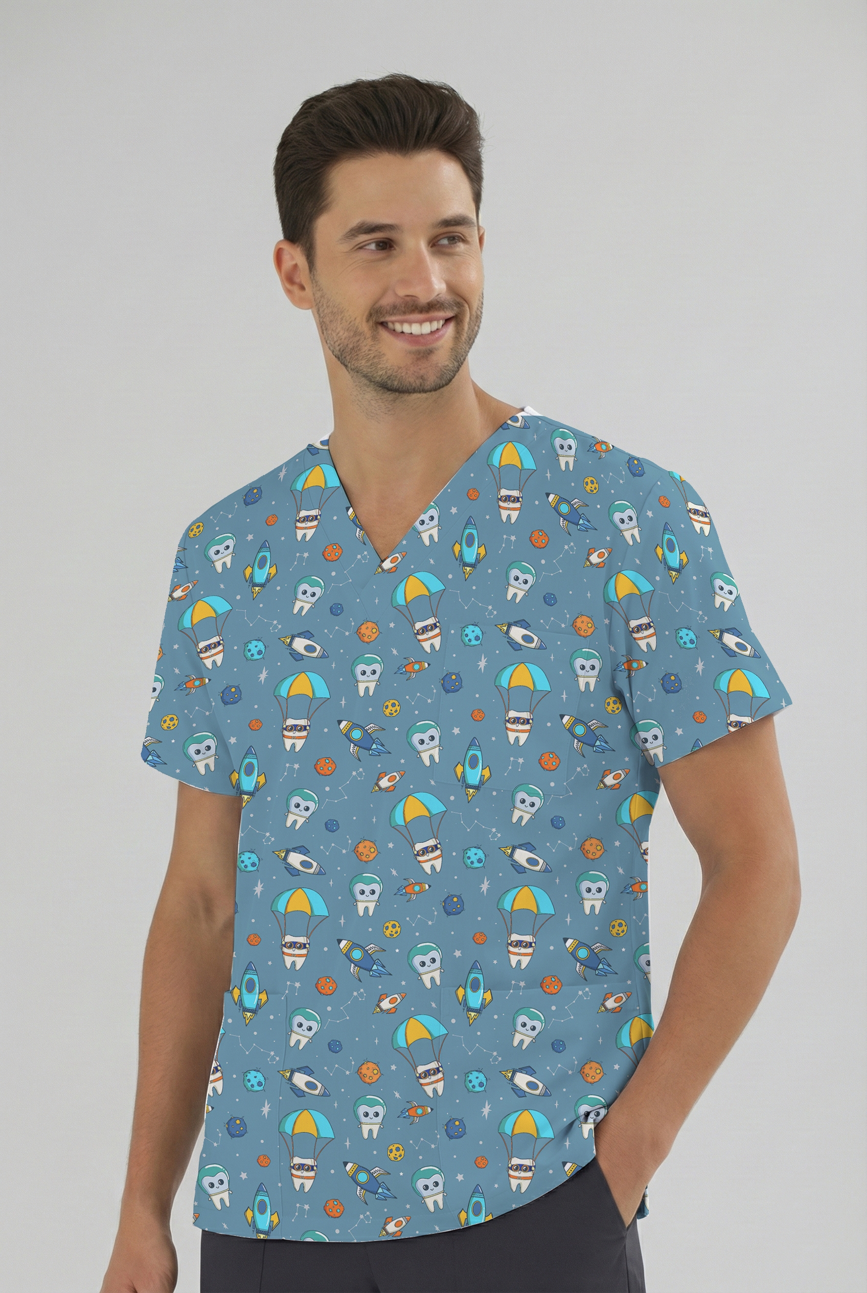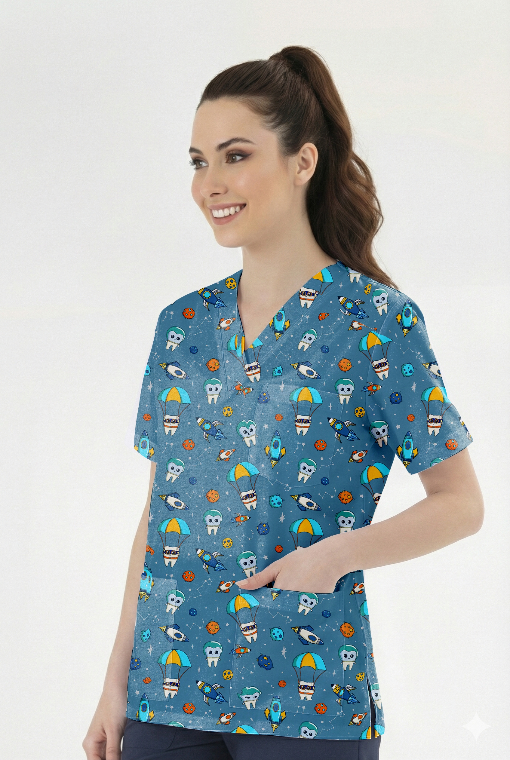 Astronot Dişler Desenli Tek Üst (Cotton Likra Kumaş)