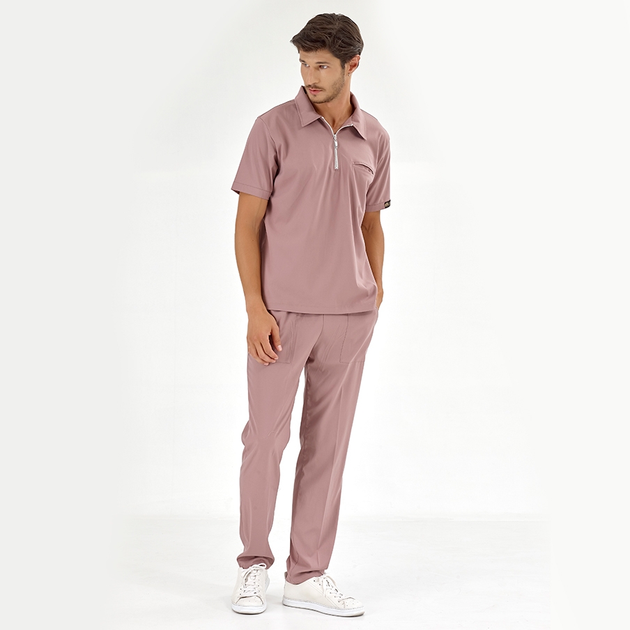 Gül Kurusu Polo Yaka Doktor Hemşire Medikal Scrubs Takım Lüks Likralı Kumaş, sağlık çalışanlarının rahatlığı ve şıklığı için tasarlanmış fermuarlı polo yaka cerrahi takımdır. Esnek yapısı ve nefes alan dokusuyla gün boyu konfor sağlar.