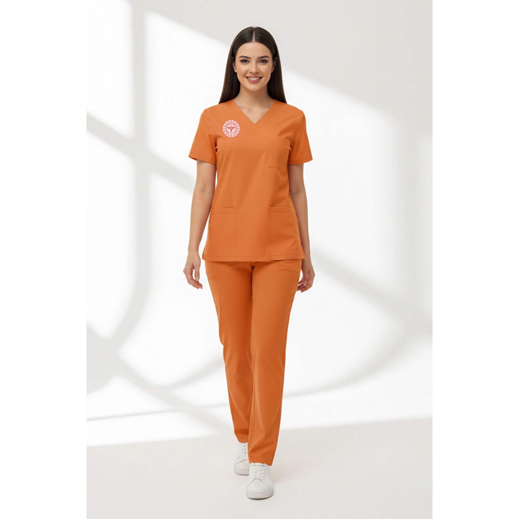 Klinik Destek Kadrosu Forması Alt Üst Scrubs Takım (Sağlık Bakanlığı 2025 Standartlarıyla Uyumlu)-Orange Ochre