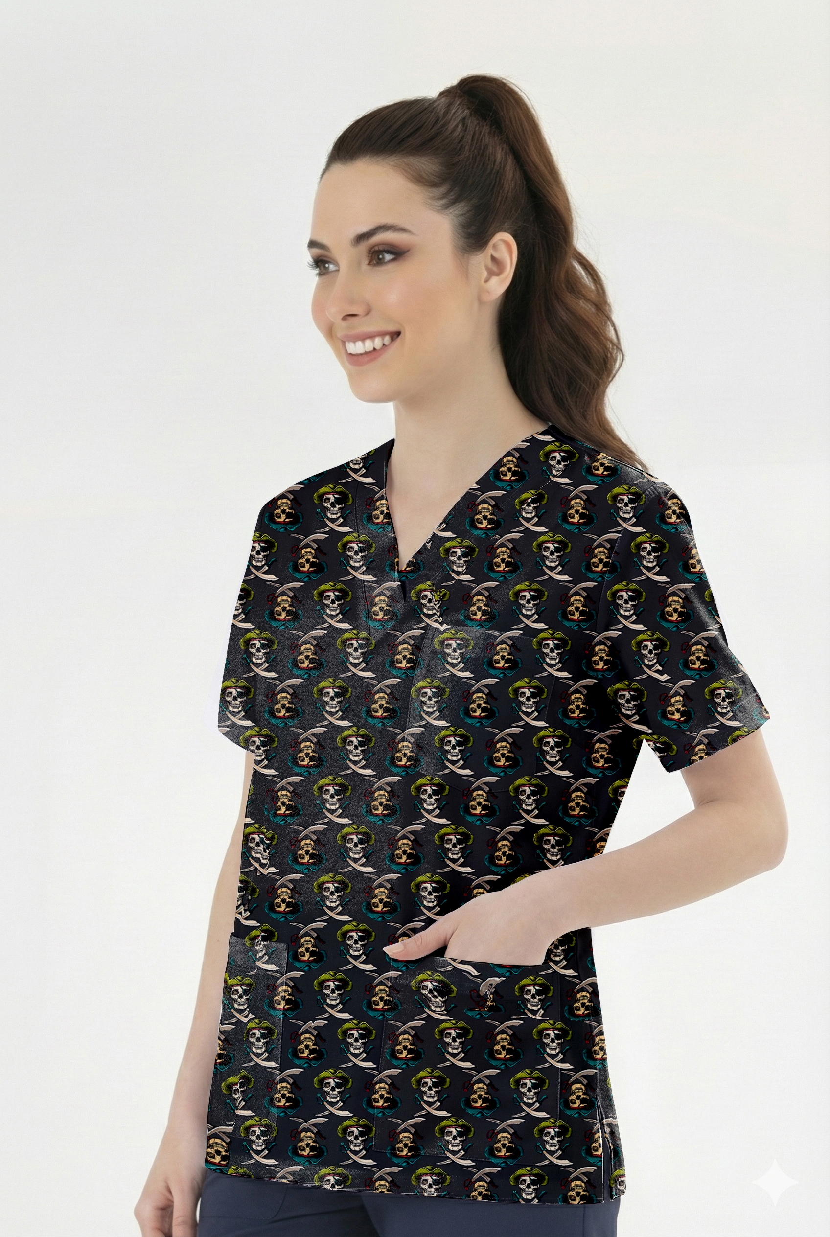 Korsan Desenli Tek Üst (Cotton Likra Kumaş)