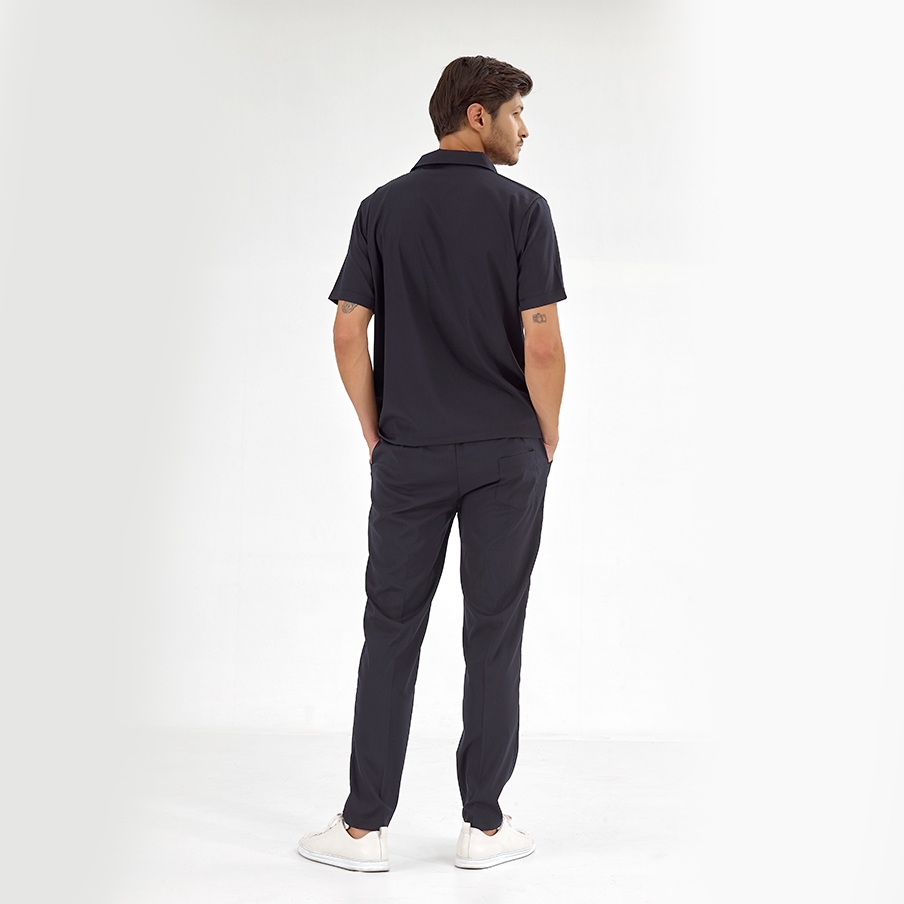 Lacivert Polo Yaka Doktor Hemşire Medikal Scrubs Takım Lüks Likralı Kumaş