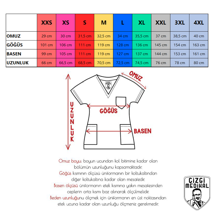 One of the most preferred surgical suit, Dr. It is the trademark registered design of Grays Terikoton Cizgi Medikal. The design is specially made for both men and women. Dr.Greys Terikoton suits can be easily used by doctors, nurses, anesthesia technicians, midwives and other health personnel. Due to the thin fabric of the Dr.Greys Terikoton suit, it is more preferred in indoor units and in summer months. The suits are produced in XXS, XS, S, M, L, XL and XXL size options. Dr.Greys Terikoton suits are available in 24 color variants.